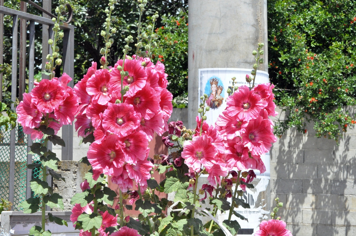 2. Perchè leghi i malvoni alla devozione di Padre Pio? Pop ambedue? L’anno scorso, vicino al raccordo anulare di Roma, c’era un campo abbandonato pieno di ruote di macchina, frigo, schifezze altre, ma in mezzo a loro c’erano migliaia di malvoni di tutti i colori. Avrei voluto che quello fosse stato il mio giardino.