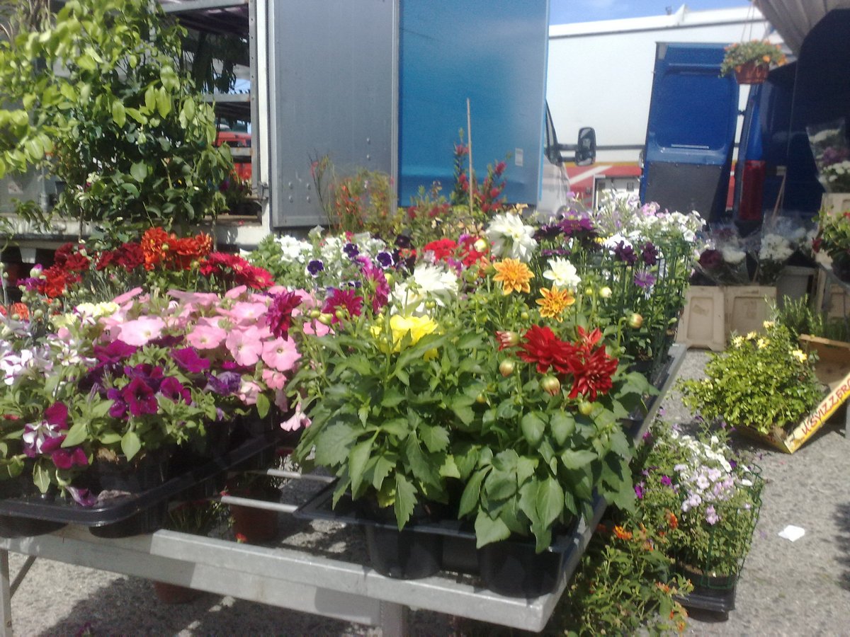 dalie a tutto andare, gerani, surfinie quasi zero, lavande a dieci euro, hippeastrum e altra roba andante