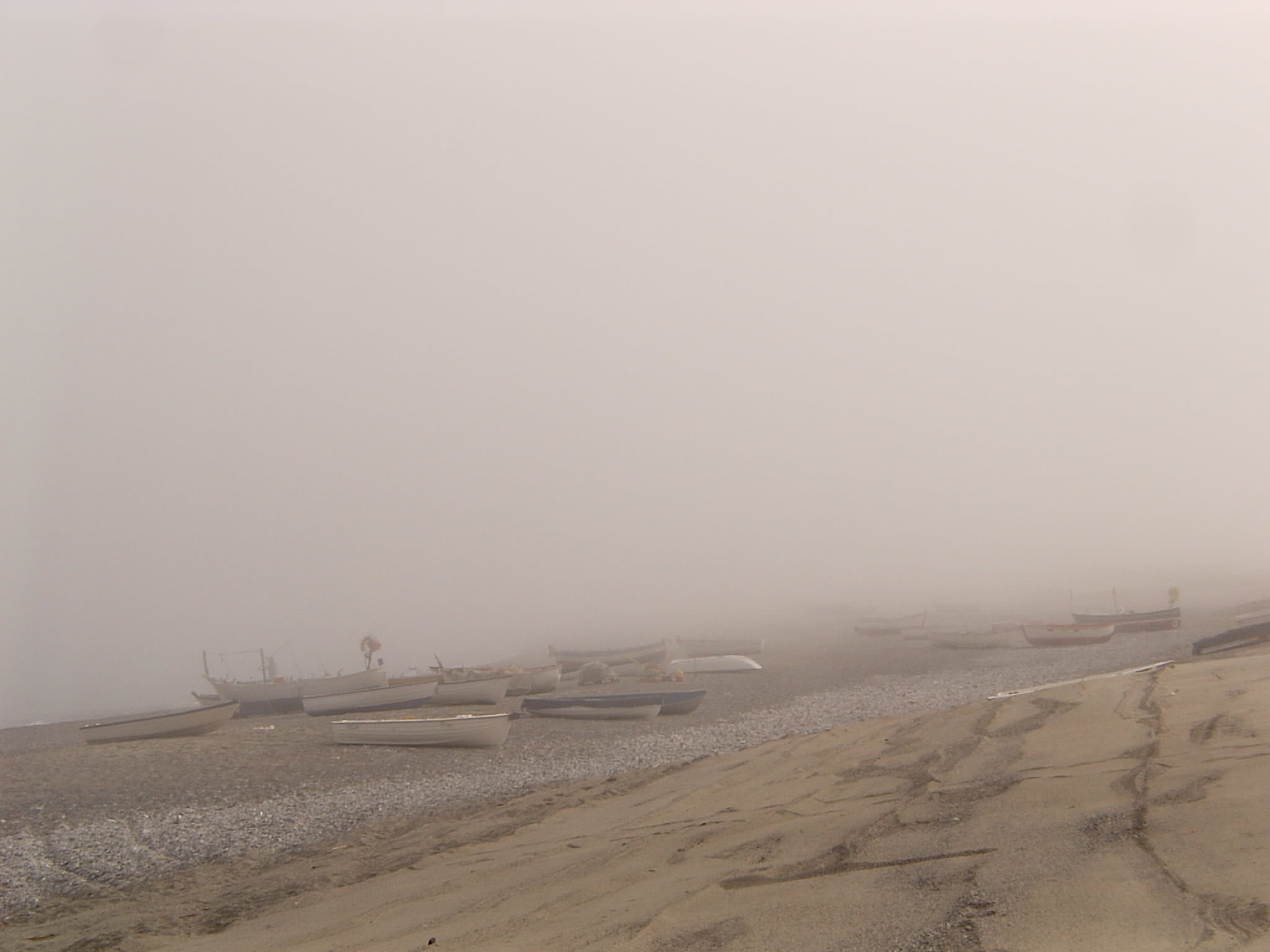 Una nebbia di mare, umida e salsa, calda, quasi bollente, soffocante. Non conosco le dinamiche climatiche che conducono alle “muffonate”, che sono comunque rare, ma quel giorno mi sentivo in Scozia. L’amata Scozia, la bramata Inghilterra. Le barche ormeggiate sulla spiaggia, che perdevano i loro contorni e i colori accesi in una cortina grigia, le vaghe sagome degli attrezzi da marineria, ancore, nasse e cime avvolte in grandi turbanti, mi hanno fatto pensare alla fatale spiaggia di Manderley, descritta da Daphne du Maurier, alla quale si arriva attraversando il bosco di rododendri profumati. È stato bello sentirsi in un romanzo. Non mi sarei stupita se avessi visto correre sulla spiaggia una figura slanciata dai lunghi capelli neri. Mi sembra…sì, credo di sì, che ci fosse Rebecca in spiaggia, quel giorno. Peccato (o forse privilegio) che l’abbia vista solo io.