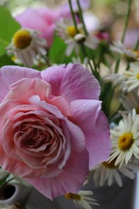 Rosa Aloha (Boerner) e margherite gialle