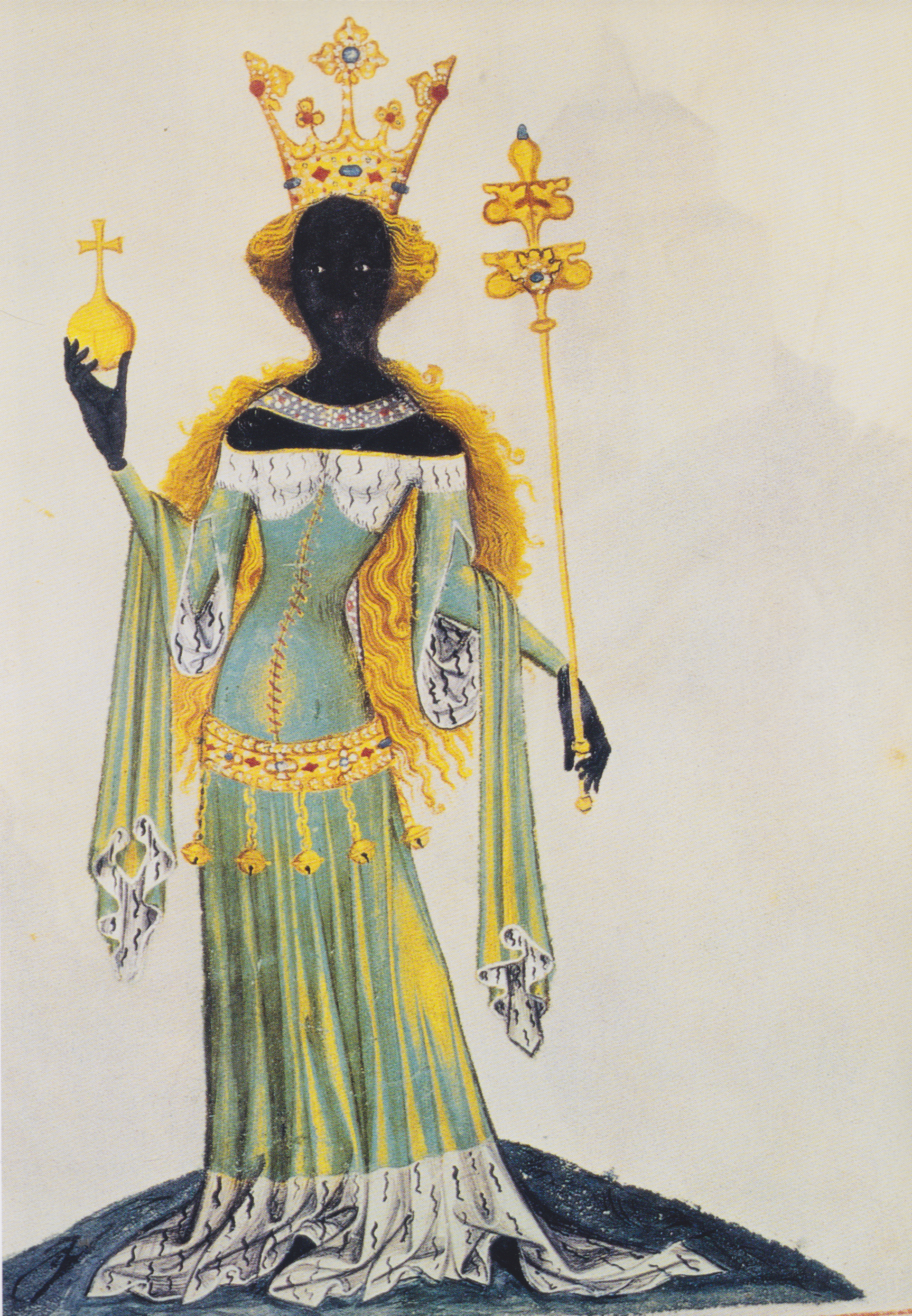 Per spiegare come , a partire dal XIII secolo, il nero perde la sua connotazione di lutto e paganesimo, ma inizia a diventare un colore elegante, cristiano e anche alla moda, Pastoureau porta ad esempio il Santo Maurizio, il Prete Gianni, il Magio Baldassarre, e la Regina di Saba.