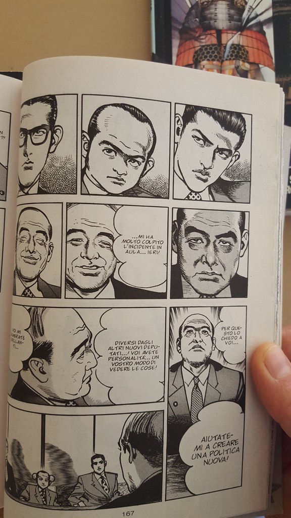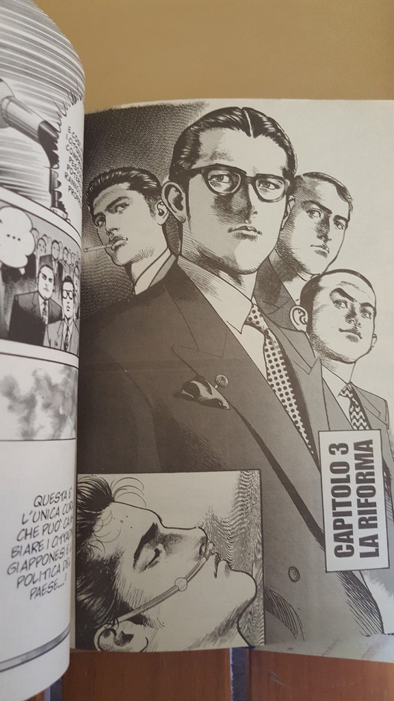 Basta dare una letta a wikipedia per trovare delle analogie fortissime alla storia politica del dopoguerra, le modifiche alla Costituzione e la dichiarazione di antimilitarismo del Giappone, pilotata dagli Stati Uniti d’America che avevano inginocchiato la nazione con due bombe atomiche. Perfino Isaoka, la “vecchia volpe” della politica, è ispirato a Shigeru Yoshida (a me ha ricordato molto fittamente Andreotti: ogni paese ha le sue icone di sciacallaggio), che fuse i partiti più potenti del tempo nel Partito Liberal Democratico, che ha tenuto le redini del Giappone per mezzo secolo, fino a un decennio addietro.