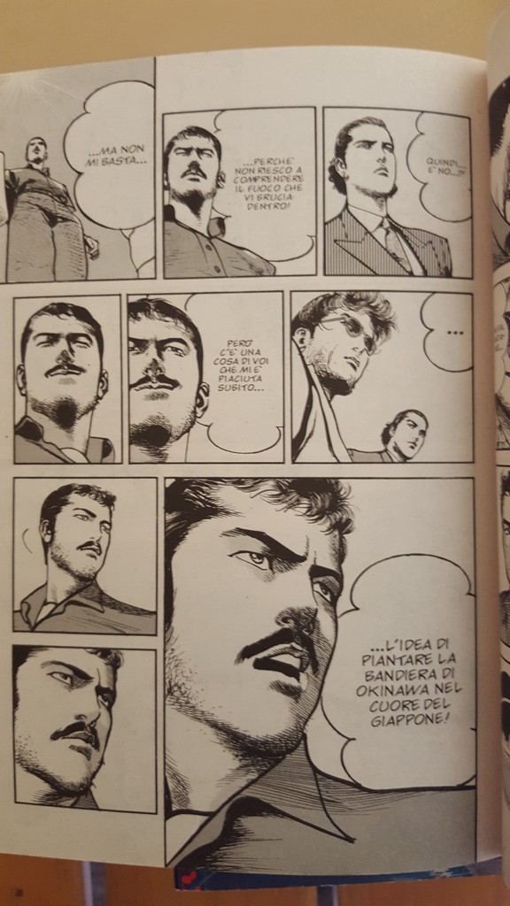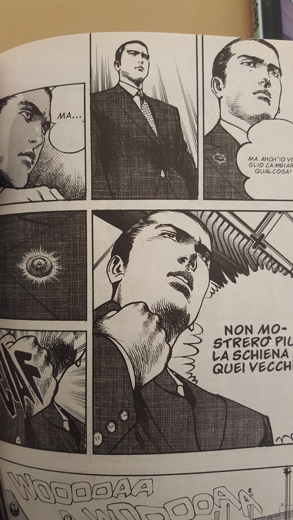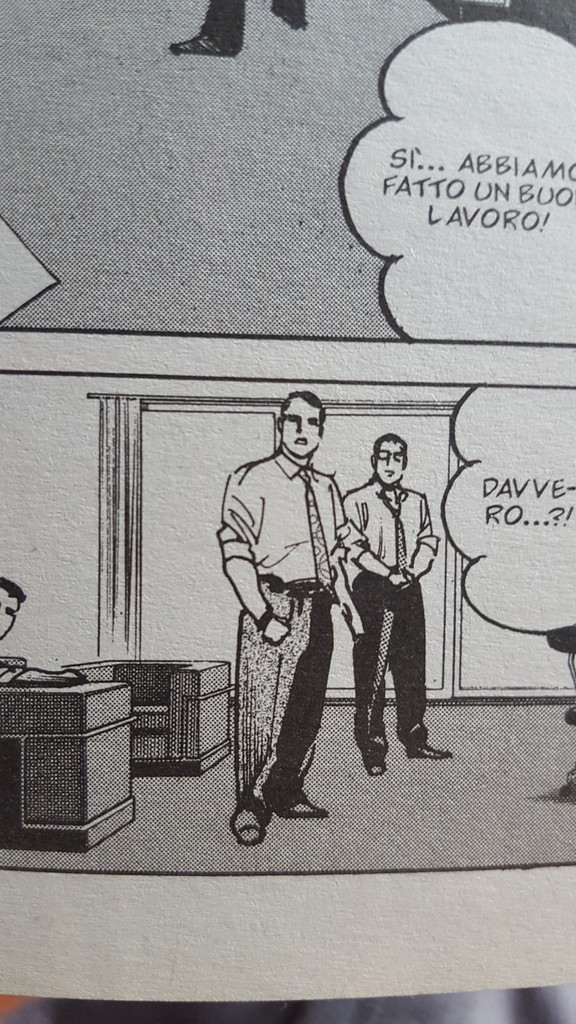 All’occhio occidentale è una graziosità se il corpo è femminile, ma una stranezza se il corpo è maschile. Ikegami forse se n’è fregato di cosa pensiamo noi occidentali, forse non lo sapeva neanche, o forse ha preferito rimanere più aderente a un tratto nipponico, senza l’obiettivo di piacere anche al pubblico estero. Non saprei. Ma il risultato è che spesso i personaggi maschili hanno pose delle gambe delicate e mobide che li fa apparire “effemminati” al nostro occhio. In realtà per i giapponesi sono semplicemente belli e basta.