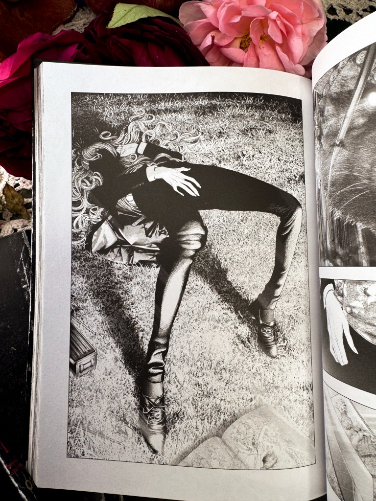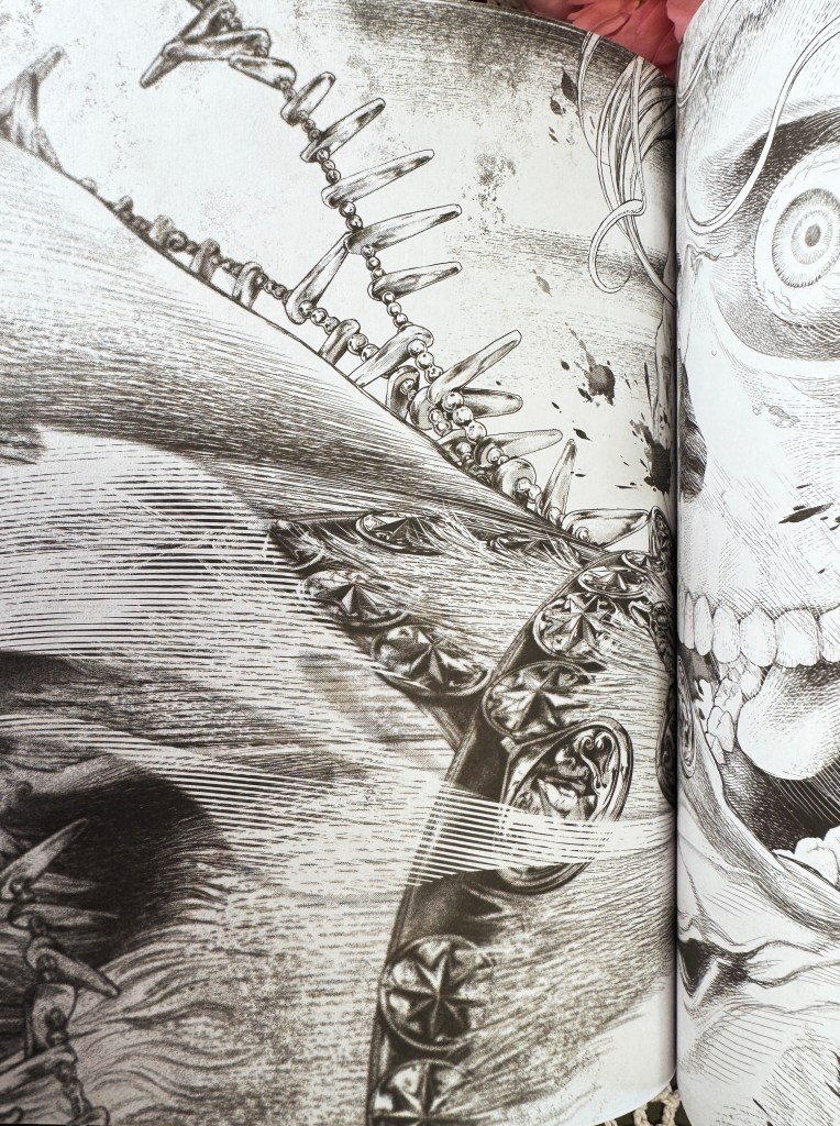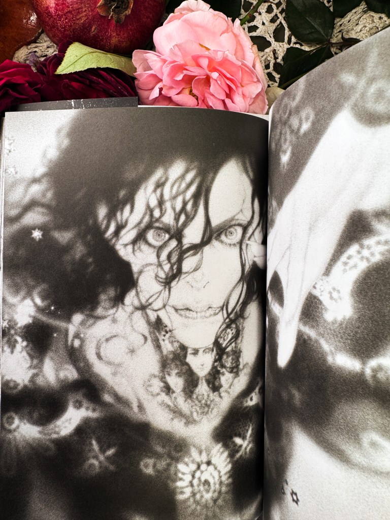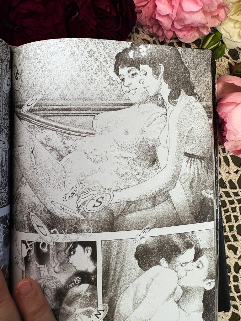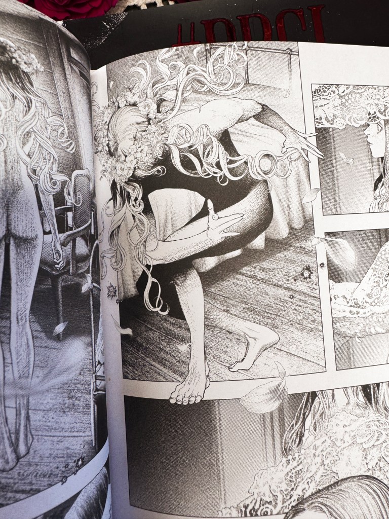 Sakamoto’s artistic culture is breathtaking, and his love for Art in all its forms is palpable on every page. In Innocent, references were already present—from Piranesi to Doré, from Jacques-Louis David to Sailor Moon—but they were subtle, intended for connoisseurs. Here, they are maximalist and exuberant. His hatched technique now echoes 16th-century engraving, where the burin’s stroke widens with pressure and tapers off. Creating this effect digitally requires crafting specific brushes and emphasizing real-world characteristics—a brilliant synthesis of graphic skill.Dürer is one of the primary sources from which Western graphic history drinks (a manga strongly inspired by Dürer’s style is Atelier of Witch Hat). However, Sakamoto’s influences lean more towards photography than painting: the theatrical stylization of Joel-Peter Witkin’s bodies, the tattoos of Chloé Jafé, Daido Moriyama’s complex visual compositions, and the eroticism of Nobuyoshi Araki. Sakamoto’s ability to draw inspiration from every era and medium is simply boundless—a hallmark of Postmodernism, of which he is one of the most distinct voices today. This fourth volume of #DRCL is a memorable moment in contemporary Art history, something I am grateful to witness in my lifetime.
