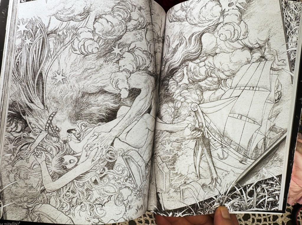 La ricchezza delle tavole è arte-illustrazione tout court, ed è incredibile che tavole così belle riescano a mantenersi fedeli a una dimensione narrativa propria.