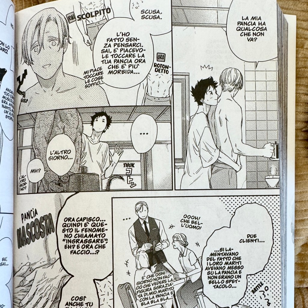 A mano a mano che la storia avanza, il personaggio di Shiro trascina quello di Miki, un po’ meno interessante, e il sentimento che nasce tra i due va di pari passo con una meticolosa collaborazione tra i personaggi e una sceneggiatura misuratissima, che utilizza la materialità per definire l’immateriale. Il cibo, il corpo, la temperatura, l’abbigliamento, il nudo e il vestito, l’interno e l’esterno, la domesticità e la metropoli, le cose rotte e le cose che funzionano. Tutto concorre a definire il carattere dei personaggi e renderli familiari nel volgere di poche decine di pagine. Questo lo fa la bravura del mangaka, non è solo la sceneggiatura o l’editor, qui conta molto il disegno, il posizionamento delle figure, degli oggetti, la cura del tratto, la scelta delle ombre, delle espressioni. Sicuramente l’autrice conosce il folklore della sua nazione, con quella finezza che si riverbera nei dettagli più piccoli: quello che noi chiamiamo “stile”. Di certo Hitomi è molto colta, si sente. E ci sarebbe da aprire una riflessione sulla vastità di un mercato che ingloba anche talenti che probabilmente sarebbero a loro agio in altri tipi di narrazione.Transparent love è quello che io chiamo “un BL osculatorio”, cioè un racconto non basato sull’erotismo più meno visibile e fine a sé stesso, ma su una vicenda narrativa all’interno della quale nasce una storia d’amore. La storia di Shiro poteva andare diversamente, è andata diversamente più volte: lo abbiamo visto.