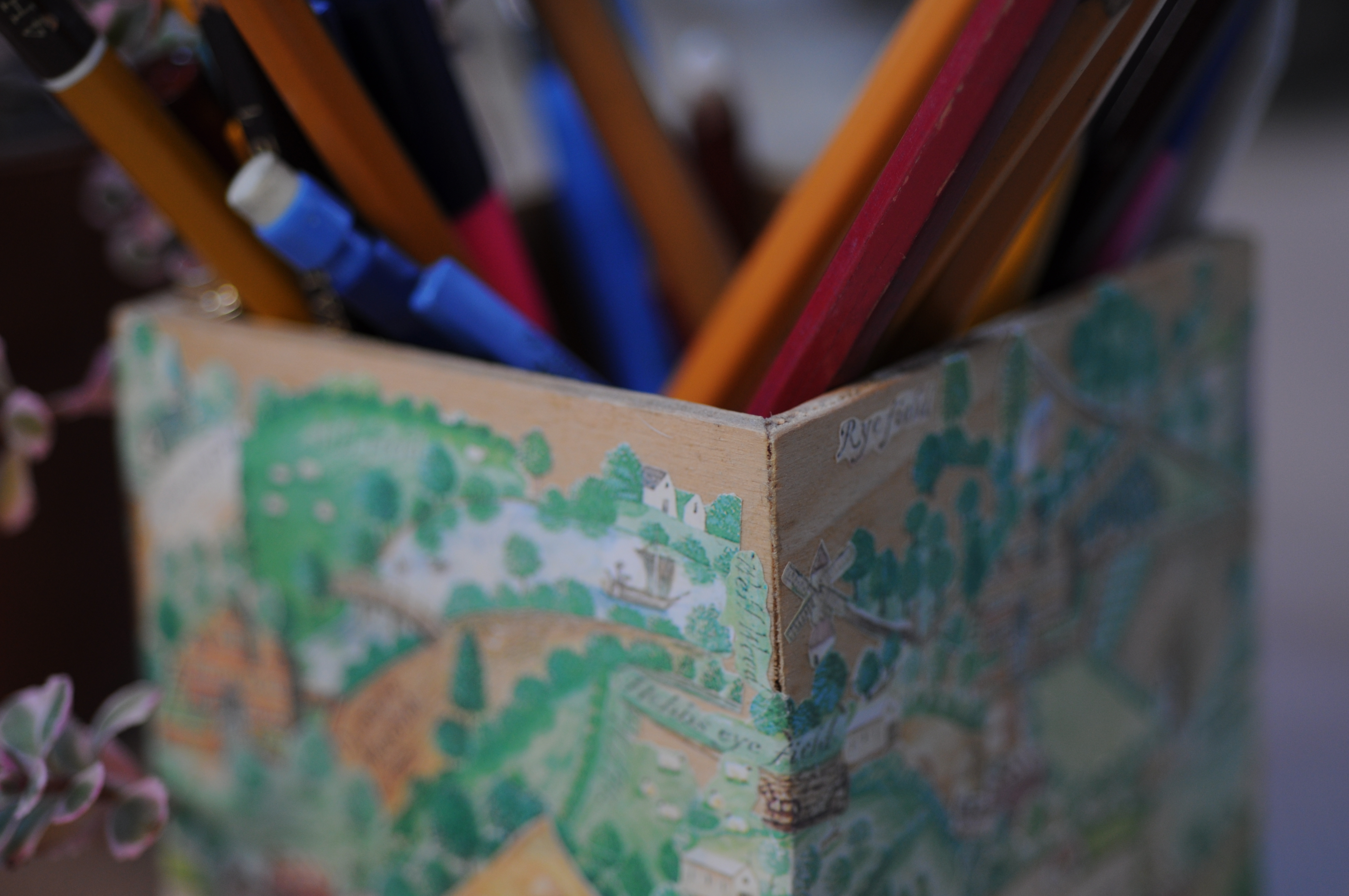 Allora ho fatto l’unica cosa che davvero mi viene bene, un portapenne col découpage.