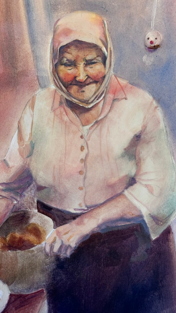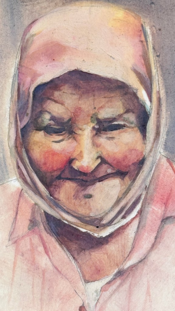 Il soggetto è una contadina sovietica, da un bello scatto di qualche fotografo di vioggio, che purtroppo non ho conservato.