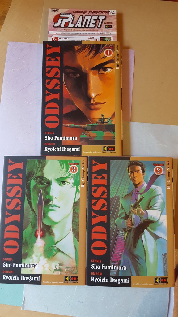 Odyssey è stato scritto nel 1995, ventisette anni fa. In Italia è stato pubblicato nel ’96 da Flashbook, che della coppia Buronson-Ikegami aveva già in catalogo Kyoko – The love bullet. Buronson si firma Shō Fumimura, come in Sanctuary, di cinque anni precedente, e di cui Odyssey è sostanzialmente un sequel.