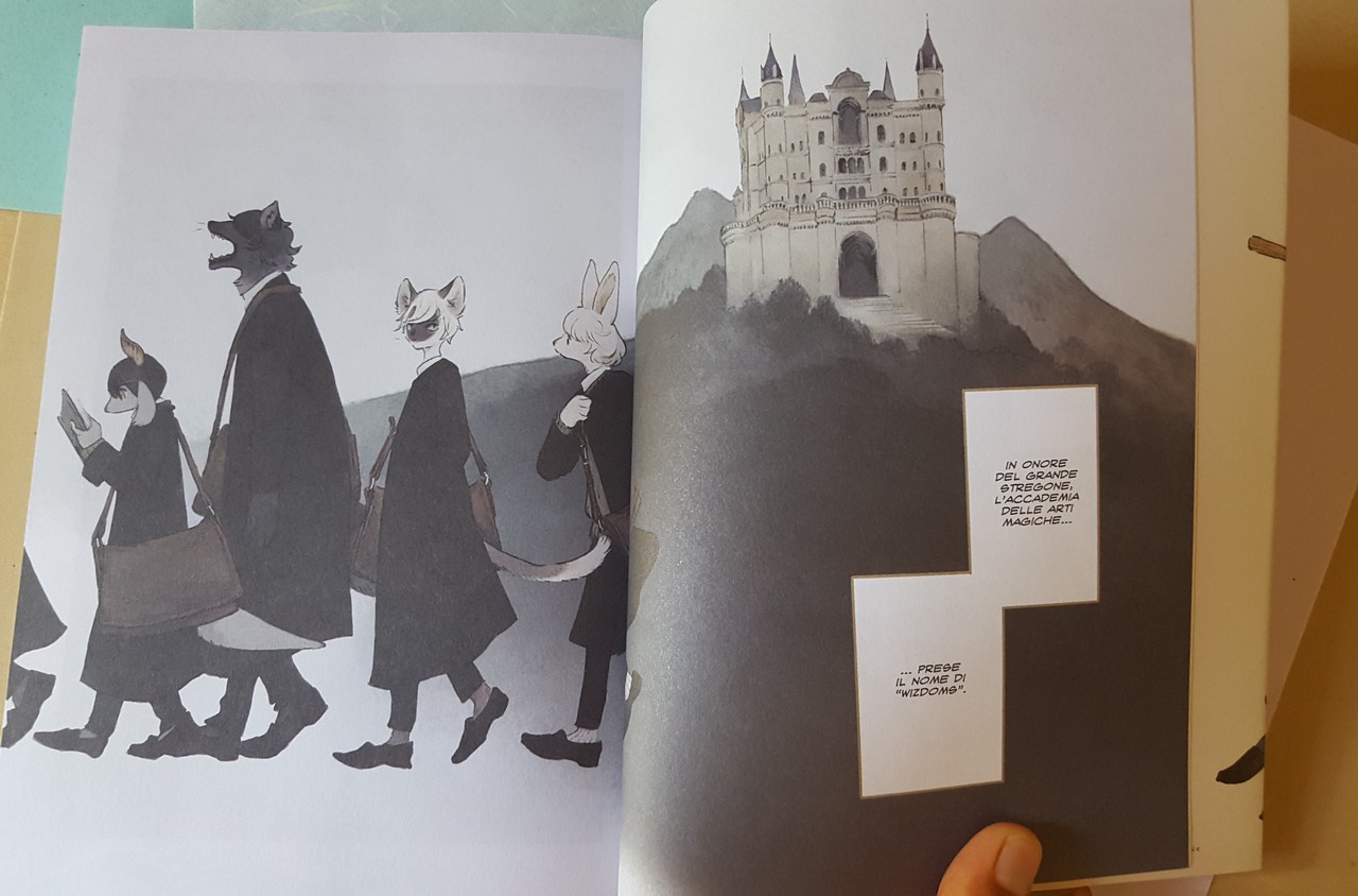 In questa scuola di magia e di scienze perdute, Wizdoms, i giovani studenti scoprono la sessualità e il romanticismo, in modo delicatissimo e poetico. Il senso del “prendersi cura” come gesto che dà e prende amore è commovente. Quell’emozione ricca di desiderio, imbarazzata e confusa, non troppo sicura di quel che avverà dopo, ma curiosa, affamata e perseverante. Questa sensazione è descritta molto bene. È proprio dalla nascita di questo sentimento l’inizio di uno dei più bei viaggi che ogni persona compie nella sua vita (e che se tutto va bene, finisce con l’ultimo battito del cuore): la scoperta della sua sessualità e delle sue unicità, sfaccettature e particolarità.
