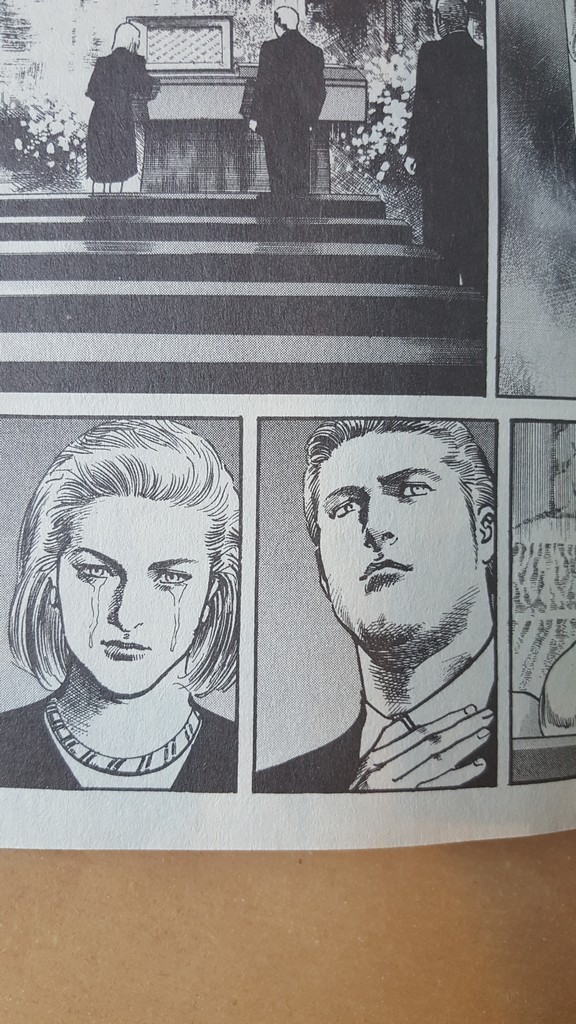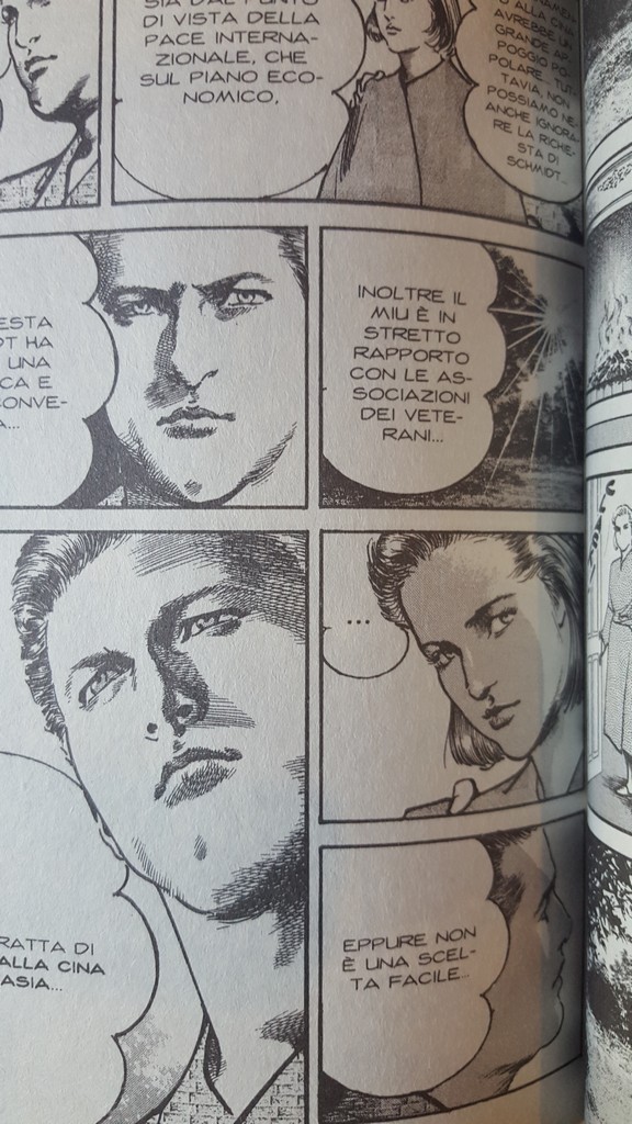 L’analista Slenger -che nel manga prende la posizione di “saggio neutro”- viene ucciso da un militare in modo da generare una reazione sia interna che estera. La risoluzione del conflitto sarà laboriosa e confusa, e anche un po’ frettolosa, come sempre accade con le sceneggiature di Buronson, che o indulgono in reiterazioni senza fine (come in Heat) , o chiudono velocemente trame complesse con un gran numero di personaggi.