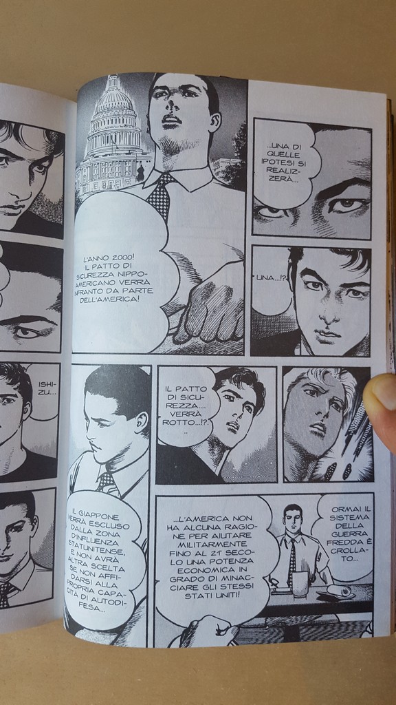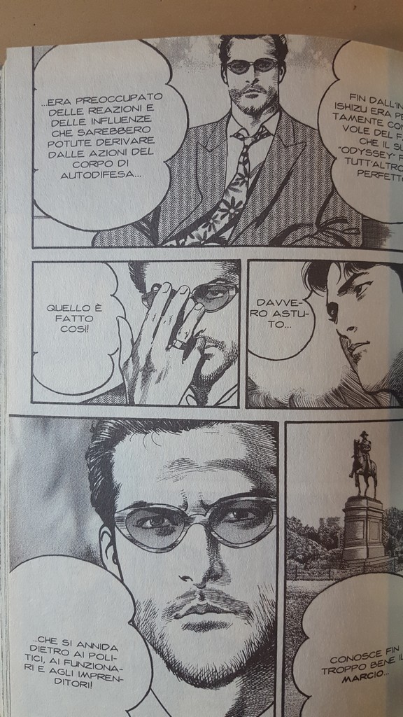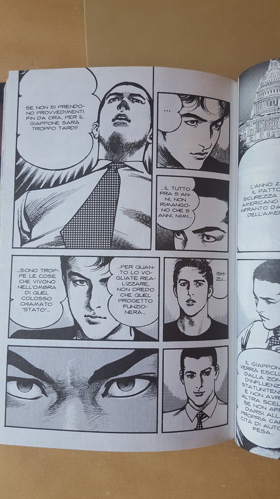 La proposta della modifica all’Articolo nove della Costituzione non era una novità nel 1990, all’uscita di Sanctuary, né cinque anni dopo, quando è stato pubblicato Odyssey. In Giappone se ne parla praticamente dalla fine della guerra, da quando gli Stati Uniti imposero la non belligeranza al paese inginocchiato da due bombe atomiche. Ma l’abilità di Buronson di trasformare il fatto politico in fatto umano e aprire scenari possibili, è stata davvero ammirevole. L’Articolo nove è stato avversato dalle fazioni più militariste della politica giapponese, e in questo credo che Buronson abbia avuto il coraggio di dichiarare la sua posizione, condivisibile o meno.