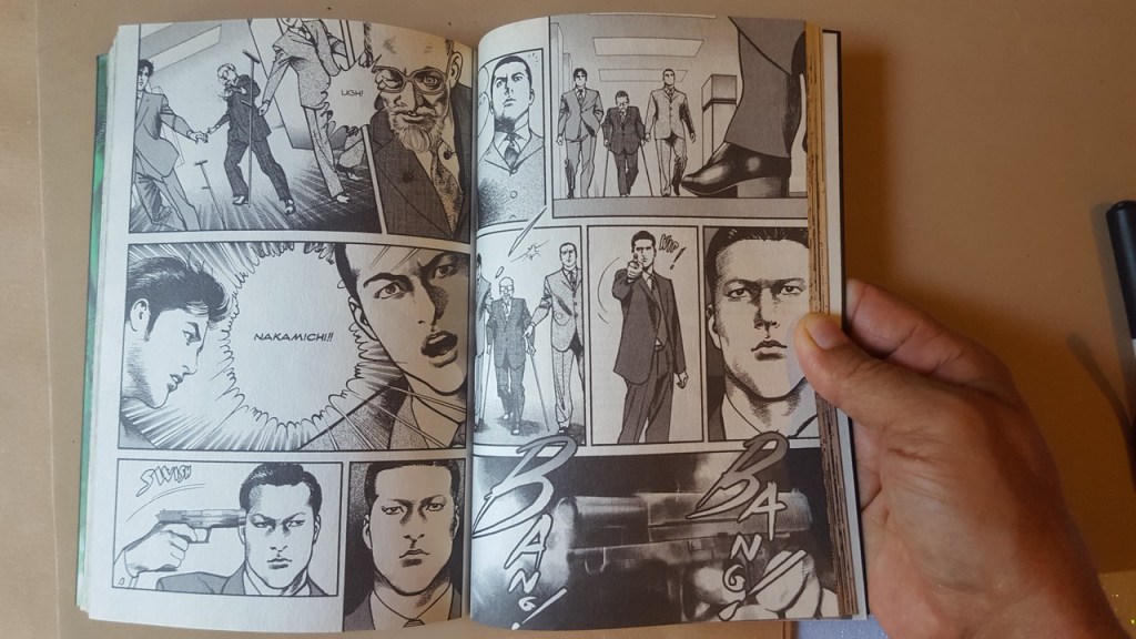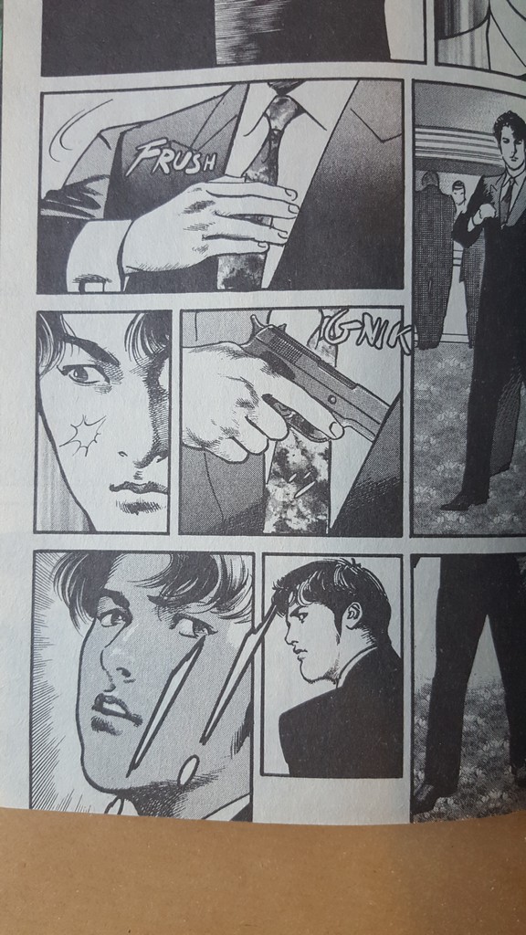 A sparargli, con una pistola vera, è Ishizu, un uomo politico affermato e potente, una sorta di Chiaki Asami di buona famiglia, vissuto negli agi, “nato arrivato”, e non più partito dalla strada e in corsa come in Sanctuary. A testimonianza del fatto che in Giappone le questioni relative allla defenestrazione dei politici non si determino attraverso le pallottole, la pistola di Ishizu viene circondata da un’aura di pericolosità e inquietudine, tanto da essere definita “un jolly”.