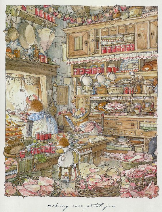 Qui il riferimento è alla contemporanea illustrazione di favolistica per bambini, tipica dell’areale britannico (Jill Barklem, per capirsi).