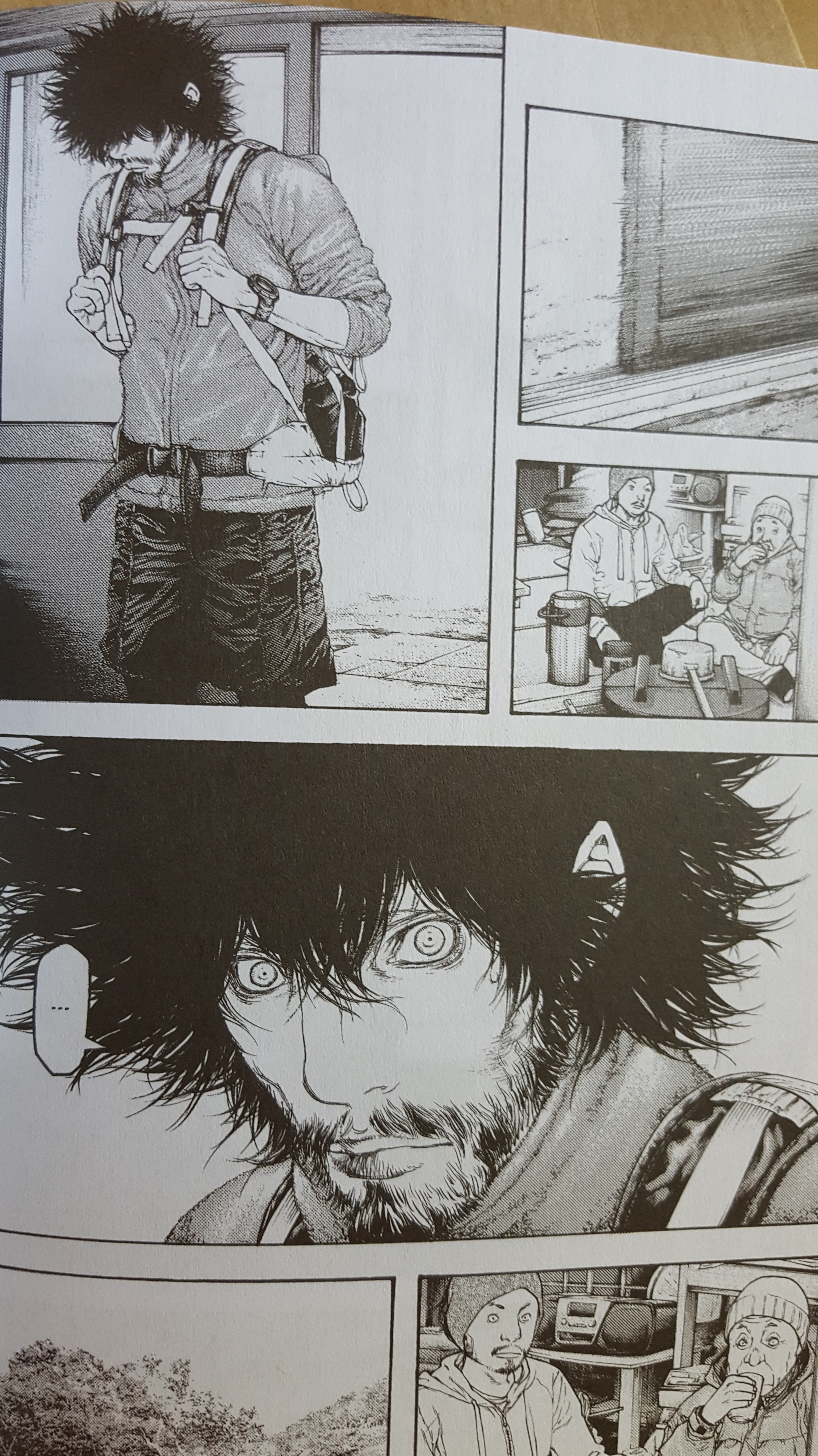 Come sempre, Ikegami inquadra i suoi personaggi da sotto in su, ottenendo sia maggiore plasticità nei volti, sia quella solennità espressiva che lo contraddistingue e che ad oggi non è stata raggiunta da nessun altro mangaka.