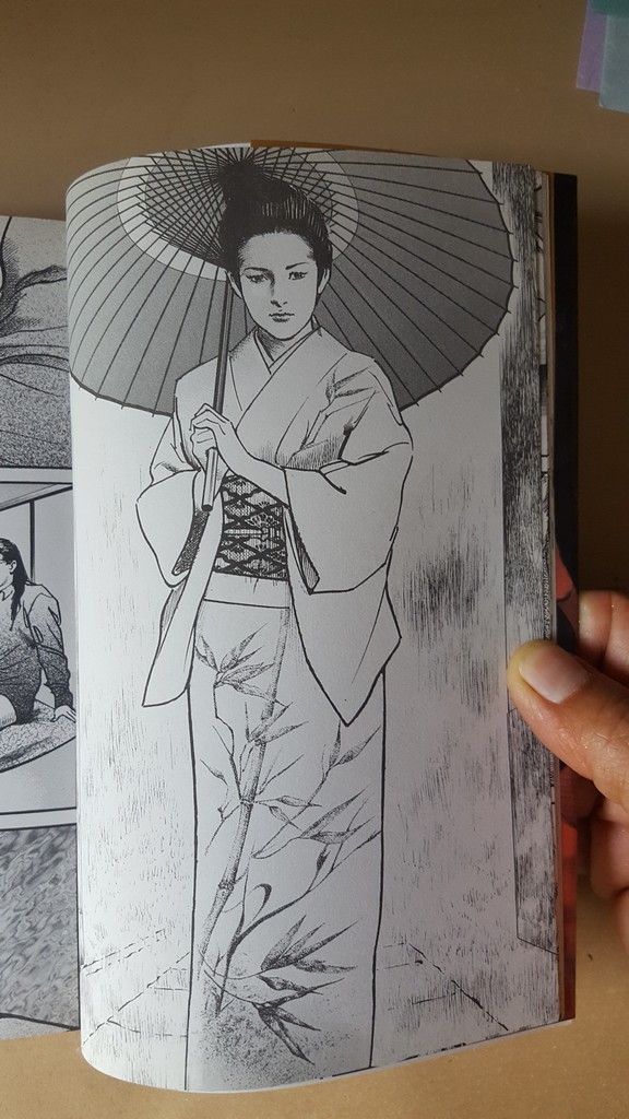 Non c’è l’ombra della caricatura neanche nel personaggio apparentemente più buffo. Le ambientazioni esterne e interne sono rese con grande cura, in particolare l’abbigliamento tradizionale maschile, lo yukata e gli abiti da ufficio, giacche e pantaloni occidentali, che comunque Ikegami disegna sempre morbidi, in modo da mettere in risalto le gambe, sia nelle scene d’azione che in quelle statiche.