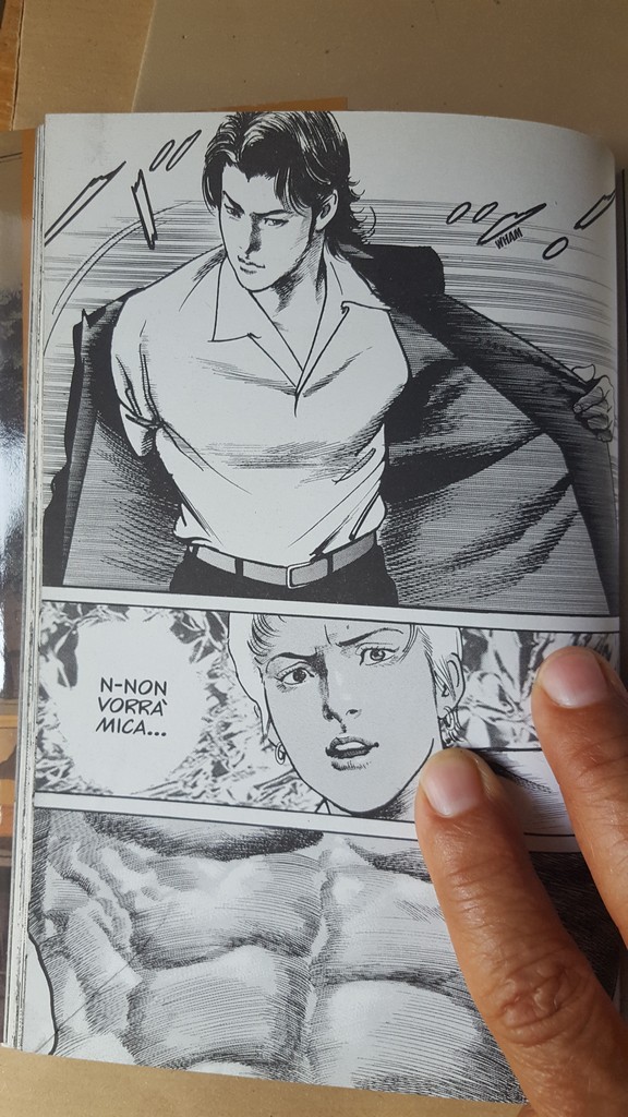 All’occhio occidentale è una graziosità se il corpo è femminile, ma una stranezza se il corpo è maschile. Ikegami forse se n’è fregato di cosa pensiamo noi occidentali, forse non lo sapeva neanche, o forse ha preferito rimanere più aderente a un tratto nipponico, senza l’obiettivo di piacere anche al pubblico estero. Non saprei. Ma il risultato è che spesso i personaggi maschili hanno pose delle gambe delicate e mobide che li fa apparire “effemminati” al nostro occhio. In realtà per i giapponesi sono semplicemente belli e basta.