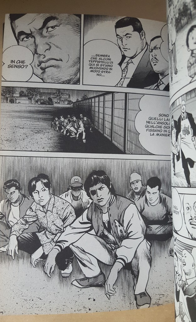Il volto di Karasawa non è convincente, come anche la sua espressione un po’ monolitica e spavalda, ma è il problema minore, sebbene il fascino dei personaggi maschili sia uno dei pilastri di Ikegami. Il punto è che il lettore non riesce a entrare in sintonia con Karasawa e prendere le sue parti. Sia perché il personaggio ha spesso atteggiamenti violenti e da teppista di strada -che vengono però descritti come eticamente accettabili o addirittura nobili- sia perché non riesce a condurre il filo narrativo in modo lineare.