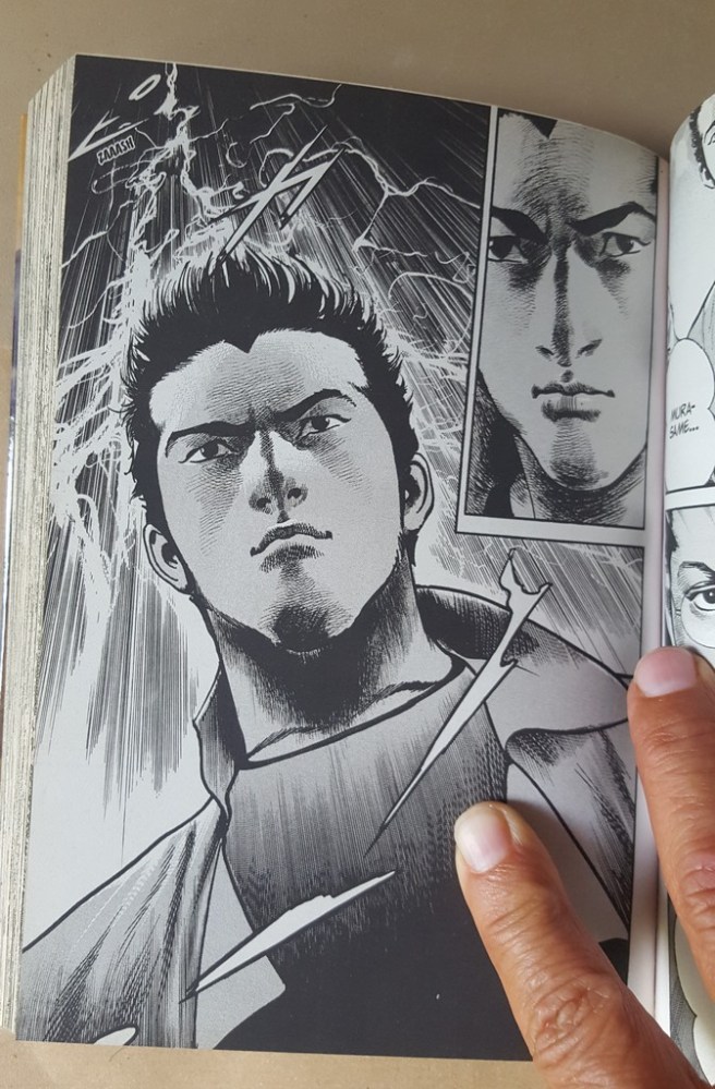 Nel disegnare Isaoka, Ryoichi Ikegami ha premuto forte sul pedale dell’acceleratore, esprimendo il massimo della sua capacità tecnica sul tratteggio e il chiaroscuro. Isaoka è in assoluto il personaggio su cui è stato speso più sforzo estetico. Fa paura davvero.