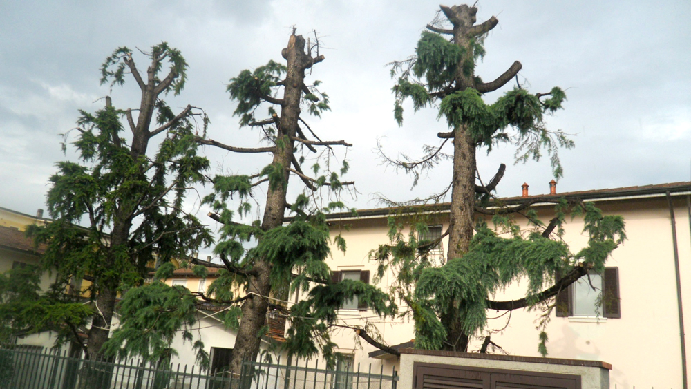 Hanno potato tutte le alberature comunali, in questo periodo (qualche giorno fa avevamo 35°), ovviamente lo fanno adesso perchè la vegetazione ributta e copre lo scempio, e l’albero non sta nudo a lungo. Nulla in contrario a tenere i ficus delle villette in “regime” squadrato, purchè sia fatto bene. Tra l’altro la potatura a squadro, anche se infantile e priva di originalità, dà un gradevole senso di pulizia e di ordine alle nostre cittadine.