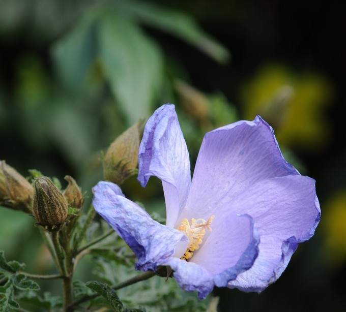 Il primo fiore di Aloygyne, l’ho fotografato un po’ sfiorito perchè mi piace come accartoccia i petali.