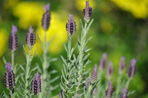 I fiori in boccio di una Lavandula stoechas, serrati serrati come i lacci delle scarpe dei bimbi.