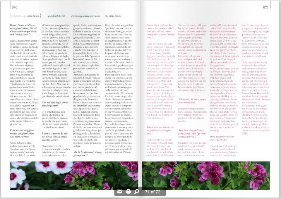 E’ la prima rivista di questo tipo in Italia e mi sembra positivo perchè vuol dire che la coscienza del giardinaggio di buon livello sta diventando una categoria interessante per il mercato.
