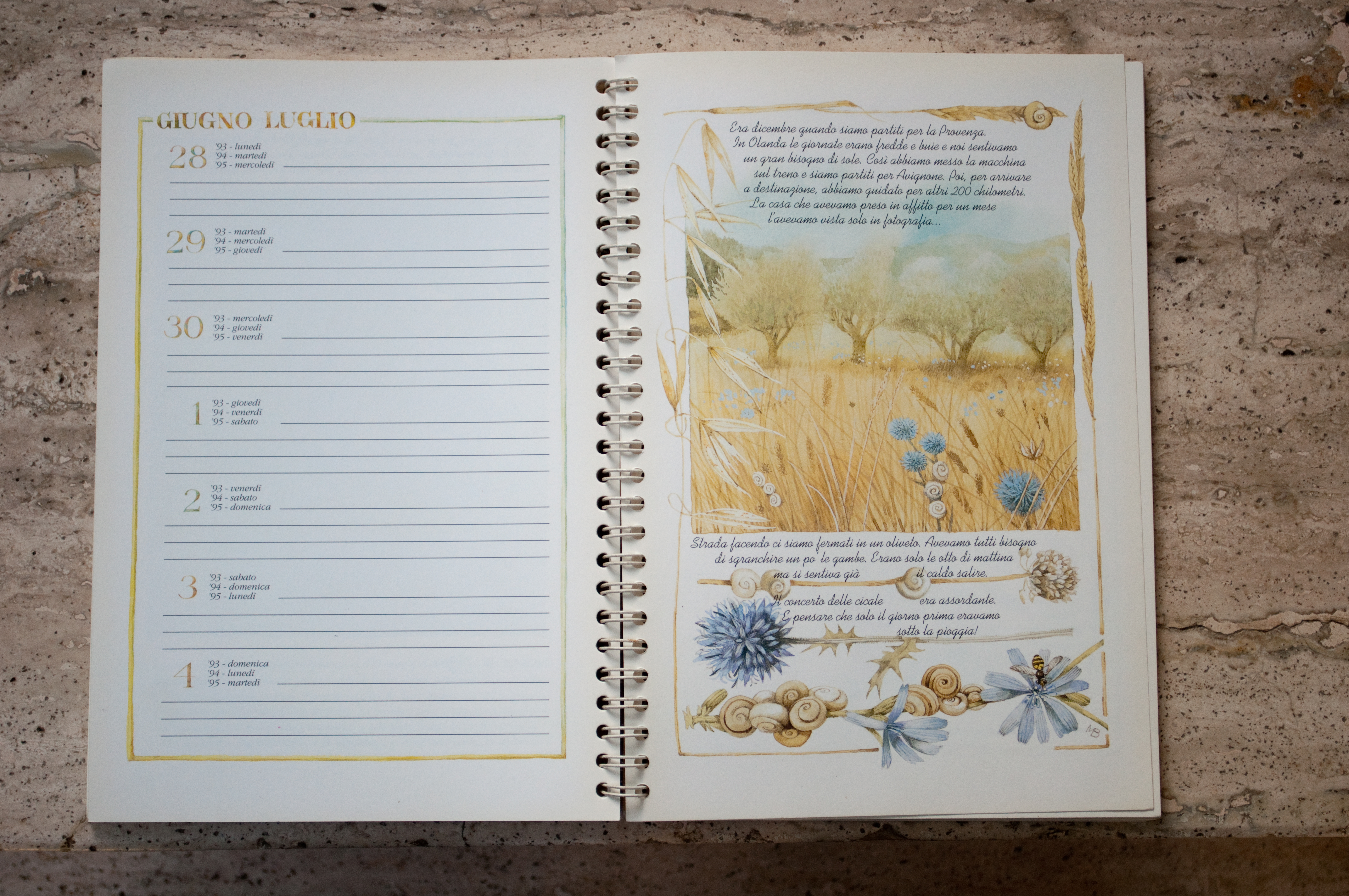Majolein, stanca del pallido sole olandese, va a cercare l’azzurro del cielo provenzale. Carica l’auto di fogli da disegno, matite, cani e famiglia, e parte.