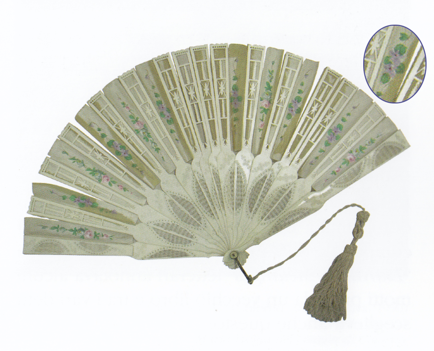 ventaglio in avorio, seta e madreperla, appartenuto a Maria Luisa d'Asburgo, decorato con violette