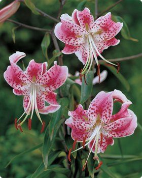 Lilium speciosum rubrumSiamo in luglio, per cui fioriscono i gigli. I gigli sono una di quelle piante di cui si può essere veramente orgogliosi se vengono su bene, perché vederli fiorire copiosamente anno dopo anno non è così semplice. Inoltre hanno un’aria decisamente poetica e raffinata. A parlar di gigli vengono in mente schiere di angeli che affollano cieli tempestosi in affreschi ottocenteschi, con un gran turbinìo di lunghe ali piumate; oppure cupe nature morte fiamminghe, oppure ancora bimbi vittoriani simili a piccoli cherubini, che cantano in coro la Gloria del Signore. Non c’è niente da fare: i gigli hanno in sé qualcosa di metafisico. Farseli amici è relativamente semplice, ma metterli al posto giusto è molto più difficile. Come prima cosa è necessario comprare bulbi di qualità ed in buona salute, perciò rigirateli bene in mano e controllate che siano sodi e che non presentino ammaccature o tracce di muffa. Bisogna inoltre piantarli al più presto perché si seccano facilmente. Preparate una buca di almeno 50 cm di larghezza e profondità, disponete sul fondo uno strato di ghiaia bello alto, poi riempite con dell’ottimo terriccio mescolato a concime granulare bilanciato e una buona quantità di letame stravecchio. I bulbi vanno interrati a circa 15-20 cm di profondità, e vanno adagiati su un ulteriore strato di ghiaia, leggermente inclinati su un fianco. Questa operazione è fondamentale, perché i bulbi di giglio temono i ristagni d’acqua, ed il terreno deve essere sì ricco e friabile, ma anche molto drenato. In genere come drenaggio io uso ghiaia di mare lavata molto bene, ma è meglio quella di fiume perché è meno calcarea, ed i gigli odiano il calcare. Anzi, buona norma è procurarsi un po’ di terriccio di montagna o comprare un sacchetto di terra per azalee. I gigli devono essere anche annaffiati molto, ma non devono rimanere “a mollo”. La posizione dovrebbe essere come per le clematis, con il fusto al sole ed il piede in ombra, perciò sono compagni ideali di cespugli di altezza media, inoltre si sposano molto bene con le rose rifiorenti, purché queste abbiano tinte delicate. Un’accoppiata classica è quella di rose bianche e gigli rosa scuro, come il ‘Black Dragon’ o il ‘Black Beauty’, od anche rosa più chiaro, come quelli del gruppo ‘Pink Perfection’ o il Lilium regale o il L. speciosum rubrum. Questi accostamenti sono magnifici anche in un vaso di fiori recisi, ma abbiate cura di recidere i gigli non più di una volta ogni tre anni, perché il bulbo ha bisogno del nutrimento che proviene dal fusto per ingrossarsi e riprodursi. Ed anzi dovete SEMPRE togliere le capsule dei semi che si formano a fine fioritura. Un’altra operazione fondamentale è quella di sostenerli con delle canne, perché altrimenti si “sdraiano” e se si tenta di rialzarli il fusto si spezza.