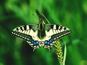 Un altro ortaggio interessantissimo è il cetriolo, che ha un fogliame grande e palmato che si insinua tra le altre piante ed è gradevole anche tra le rose. Inoltre i fiori sono veramente belli. Altrettanto interessante può essere la bieta a costa rossa, anche se non so se si trovi facilmente. Anche il rabarbaro è una pianta usatissima per scopo ornamentale oltre che culinario, e se mi posso permettere, raccomanderei a chiunque avesse un giardino sufficientemente grande, di raccogliere un po’ di semi di finocchio selvatico e spargerli in un angolo del giardino. Col tempo può risultare invadente, ma vi assicuro che l’effetto d’insieme è stupefacente, basta vederlo in fiore nei campi in primavera. Inoltre il finocchio attira una varietà particolare di farfalla che ormai è praticamente scomparsa, il bellissimo Macaone.