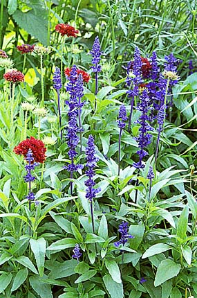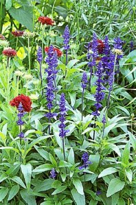 Ogni volta che consiglio l’acquisto da un catalogo vengo assalita dai dubbi: in quanti seguiranno il mio consiglio? In quanti richiederanno il catalogo? E di questi, quanti ordineranno qualcosa? Perciò vi dico: abbiate un po’ di fiducia, conosco questi vivai e vi ho acquistato diverse volte, sempre con ottimi risultati. Certo, la tasca ne soffre, più che altro per le spese di spedizione, perché i prezzi sono più che decenti (molti commercianti locali non fanno prezzi migliori). Le salvie si riproducono molto facilmente per talea o divisione del cespo, perciò non costano care. Richiedete questi cataloghi: Priola via delle Acquette 4, 31100 Treviso; 0422/304096) e Le Essenze di Lea, fornitissimo, più caro ma con ottima qualità (Le Essenze di Lea 0583/20646). Fate una prova con salvie differenti da quella officinalis: ne sarete a dir poco entusiasti e vorrete collezionarne quante più possibile. La salvia produce spighe in una gran varietà di toni dell’azzurro e del viola, che sono colori così rari in giardino! Vengono usate soprattutto come compagnia delle rose, ma sono splendide accostate a qualsiasi altra pianta. Non hanno mania di protagonismo, e non rubano la scena: la loro forza è nel colore puro del fiore e nel portamento aperto e espanso. Sono perfette compagne delle rose rifiorenti moderne, specie di colore rosa chiaro, bianco o giallo. Bellissime anche vicino alle graminacee ornamentali o a piante perenni come margherite bianche o gerani.