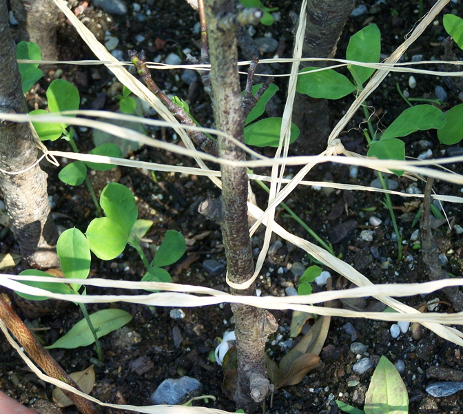 Appena i piselli odorosi hanno messo due paia di foglie vere vanno cimati (prendere le foglioline tra le unghie del pollice e dell’indice e strapparle via). Fatta questa operazione si possono eseguire le legature con la rafia come supporto.