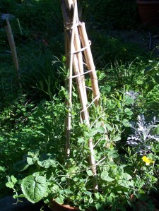 Un wigwam costruito con pochi pezzi di canne: in poco tempo il supporto sarà completamente ricoperto.