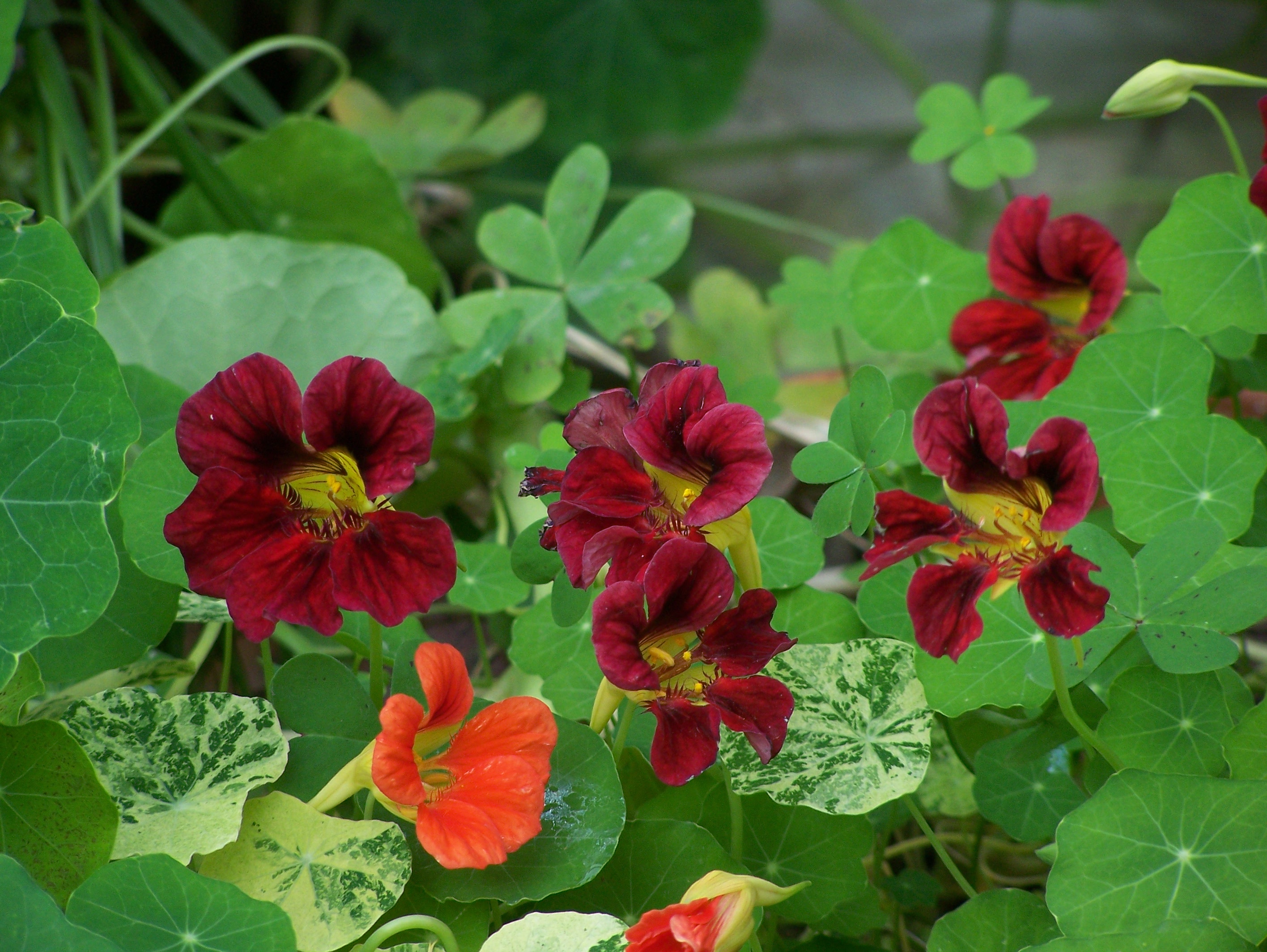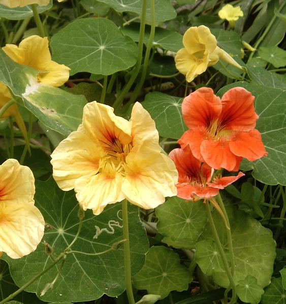 I nasturzi si possono usare in moltissimi modi. Generalmente i libri li relegano a comprimari in bordure dai colori aranciati, per dare morbidezza a piante dal portamento eretto, come le dalie o la Crocosmia. Spesso le forme variegate vengono accostate ad altre piante dal fogliame marmorizzato di bianco, per avere un effetto freddo.