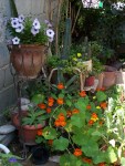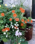 Coltivare i nasturzi in cesti pensili è un uso ormai consolidatissimo in Inghilterra. Purtroppo qui in Italia si fa molta fatica a trovare proprio la struttura metallica che serve da contenitore. Si può ovviare utilizzando i vasi di plastica a tenuta d’acqua che sono spesso usati per le piante da interno, oppure con un po’ di pazienza e manualità, si possono praticare dei fori in un vaso di terracotta e sospenderlo con delle catene.