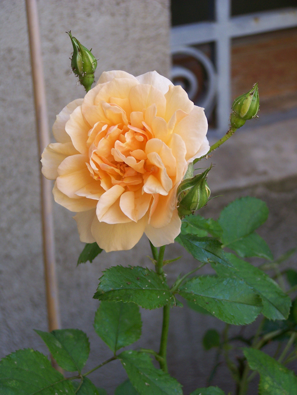 È un peccato perché il suo fiore è molto grazioso, con un colore intenso ma tutt’altro che rude, dotato di tutta la morbidezza del velluto dell’albicocca, ma con in più la freschezza e la lucidità delle caramelle gommose alla frutta. Il petalo infatti tende a schiarire sul bordo esterno, dando al fiore sfericità, trasparenza e tenerezza. Tuttavia il colore rimane fermo e non vira né verso il rosa né verso il giallo, caratteristica che a volte rende preziosa una rosa. Il fiore tra l’altro è abbastanza grande e ricco di petali per essere quello di un rosaio rifiorente a mazzi, guarnito di bel profumo, che ben accompagna il colore della corolla.