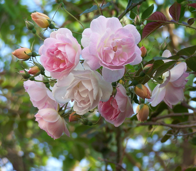 In questa fase non solo il fogliame, ma anche i tralci e le spine sono di color porpora, e se si ha l’accortezza di collocare la rosa “in trasparenza”, dove possa essere vista cioè attraverso i raggi del sole al tramonto, l’effetto è di incommensurabile bellezza.