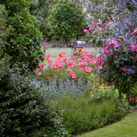 Uno dei desideri dei proprietari era quello di non introdurre una flora palesemente fuori contesto rispetto a quella spontanea del Tagliamento. Ad esempio sono stati rispettati i ligustri, le piante tra cui Montale diceva che si muovono “i poeti laureati”, ma che qui sono specie tipica della zona, familiare, quasi domestica. Non volendo creare delle vere e proprie “stanze all’inglese” Valery, con sensibilità d’artista, ha distribuito le essenze arboree e le piante arbustive come punti focali per segnare percorsi ottici e per creare delle separazioni formali all’interno del giardino, il cui elemento unificante è il verde del prato, che per la sua vastità assume le dimensioni favolistiche di una sorta di lago erboso.